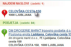 Zemljevidi najdejo več različnih naslovov, kjer so lahko vpisana tudi podjetja.