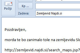 Odprlo se vam bo okno za pošiljanje sporočila, kjer je spletni naslov do zemljevida dodan.