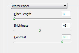 Kliknite zgoraj na Filter, Sketch in izberite Water Paper... V novem oknu nastavite iste vrednosti kot jaz in kliknite na gumb OK. |