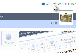 Če še niste prijavljeni, kliknite zgoraj na Registracija.