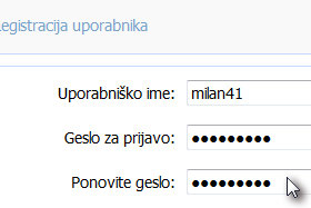Prikaže se stran, kjer vpišete poljubno uporabniško ime ter dvakrat isto geslo.