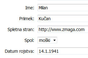 Po registraciji se vam prikaže stran, kjer imate možnost vpisati vaše osebne podatke.