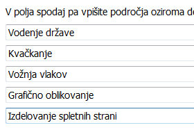 In spodaj imate na voljo še pet polj, kjer lahko vpišete različna znanja, ki jih obvladate.