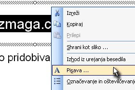 Sedaj označite še spodnji del teksta, kliknite na njega z desnim miškinim gumbom in izberite Pisava.