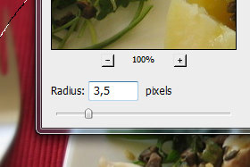 Potem pa kliknite zgoraj na Filter, Blur in izberite Gaussian Blur... V novem oknu Radius nastavite na 3,5 pixels in kliknite na gumb OK. |