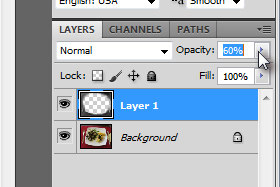 Potem pa layerju določite Opacity na okoli 60% (glej sliko). |