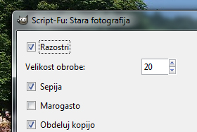 Gimp je uporabil kar veliko vnaprej posnetih nastavitev, da ste dobili zelo dober staromoden efekt.