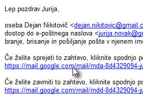 Potem pa znotraj sporočila kliknil na povezavo za sprejemanje pravi (glej sliko).