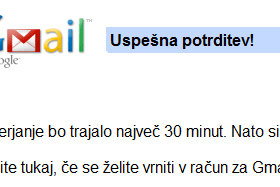 Ko bo uporabnik na povezavo za potrditev kliknil, bo potrebno počakati največ 30 minut.