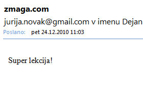 Ko bo sporočilo poslano, bo prejemnik videl vaš e-poštni naslov, vendar pa bo poleg pisalo tudi v katerem imenu jo bilo poslano.