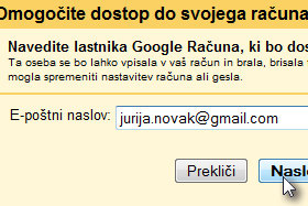 Prikaže se novo okno, kjer v polje E-poštni naslov vpišite naslov osebe, s katero želite deliti svoj Gmail.