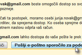 Sedaj pa boste videli, kako izgleda potrditev pri uporabniku, ki ste mu dodali omenjeno možnost.