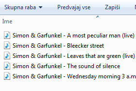 V mojem primeru imam od izvajalcev Simon & Garfunkel skladbe na računalniku grdo prikazane.