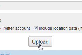 ...obljukajte "Post to Twitter account" in "Include location data (if available)". Kliknite še Upload.
