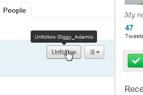 Če uporabnika ne želite več spremljati kliknite gumb Unfollow, ki se pojavi, ko kliknete tipko Follow.