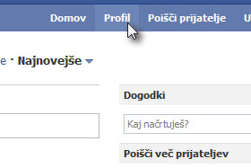 Kliknite na desni strani zgoraj na Profil.