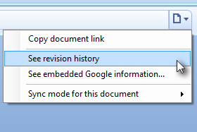 Sedaj poleg povezava kliknite na ikono dokumenta in izberite možnost See revision history.