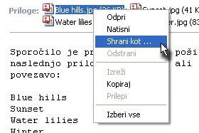 Z desnim miškinim gumbom kliknite na neko prilogo in izberite Shrani kot ...