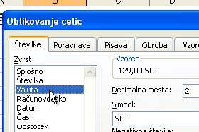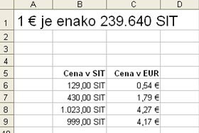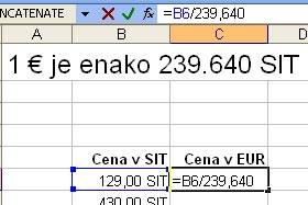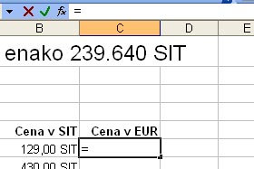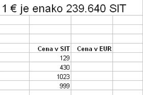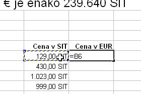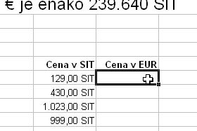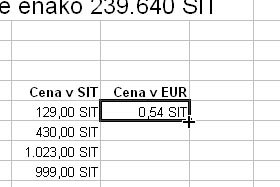 Označite celico na levi strani, kjer se nahaja cena v SIT.