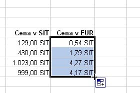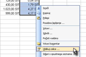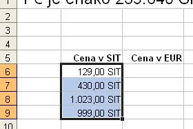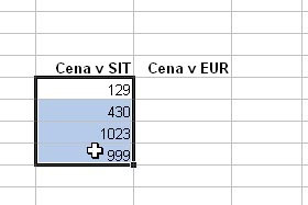 Označite sedaj celice, kjer se nahajajo cene v SIT.
