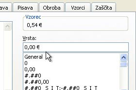 0,00 pomeni cena z dvema decimalkama. Znak za Euro se napiše tako da pritisnite tipko ALT GR in E skupaj. |