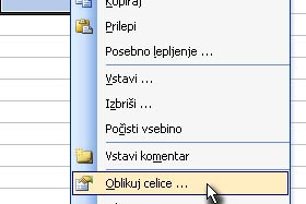 Kliknite na označene celice z desnim miškinim gumbom in izberite Oblikuj celice ...