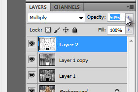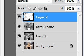 ![]() Pritisnite tipki Ctrl + J, da duplicirate dupliciran layer. |