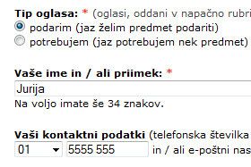 Odpre se stran, kjer označite podarim (jaz želim predmet podariti) in spodaj v polja vpišete vaše ime in kontakt.