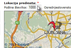 V polje Poštna številka vpišite poštno številko kraja, kjer se nahajate.