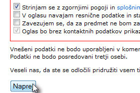 Če se strinjate s pogoji, jih nato označite in kliknite na gumb Naprej.