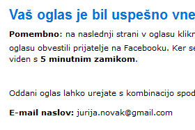 Vaš oglas bo po vsej verjetnosti uspešno vnešen.