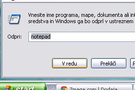 Za poškodbo računalnika vašega ali katerega koli ne odgovarjam ! Začnimo: Kliknite gumb Start -> Zaženi -> vpišite notepad -> in kliknite V redu.