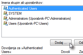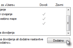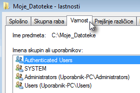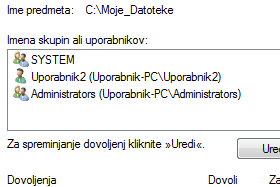 ![]() Naši mapi bomo sedaj določili dodatne pravice za uporabniški račun Uporabnik2. |