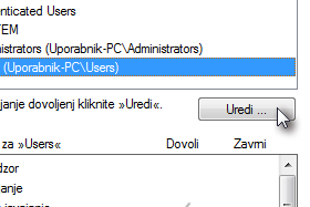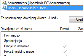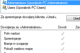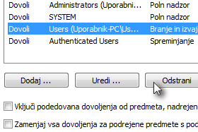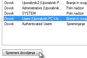 ![]() Sedaj kliknemo še gumb Spremeni dovoljenja. |