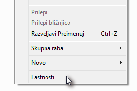 ![]() Sedaj z desnim miškinim gumbom kliknemo na mapo Moje_Datoteke in izberemo opcijo Lastnosti. |