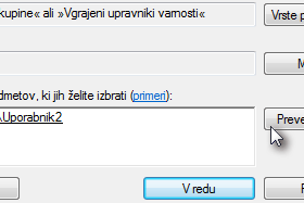 ![]() V iskalno polje vpišemo ime uporabniškega računa, ki ga želimo dodati. V mojem primeru bom dodal račun Uporabnik2. |