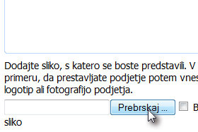 ... in v oknu z raziskovalcem označite ležečo fotografijo, ki predstavlja vas osebno ali podjetje.