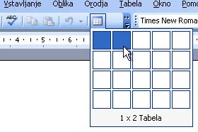 Kliknite na ikono za tabelo in izberite 1 x 2 Tabela.