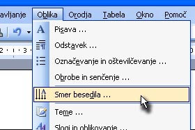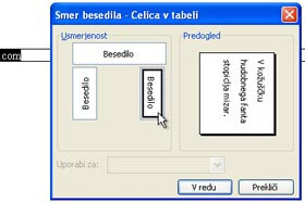 Odpre se vam okno Smer besedila.