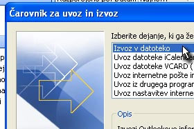 Izberite Izvoz v datoteko in potrdite na gumb Naprej. |