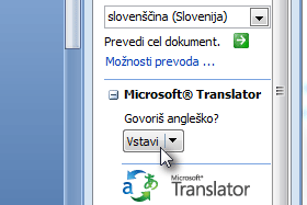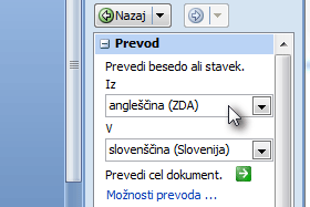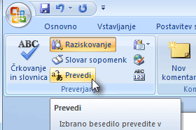 ![]() V zavihku Prevajanje kliknemo na gumb Prevedi. |