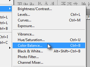 Kliknite zgoraj na Image, Adjustments in izberite Color Balance... |