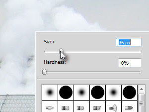 Kliknite z desnim miškinim gumbom na dokument in določite poljubno velik čopič (Size) in Hardness na 0% (glej sliko).