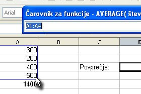 Sedaj moramo izbrati, katere celice bomo uporabili za izračun povprečja.