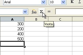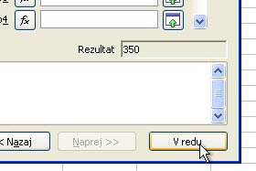 Kliknite sedaj na ikono za Vsoto.