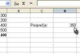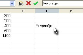 Kliknite na neko poljubno celico in vpišite tekst "Povprečje:".