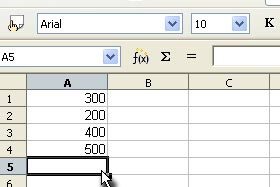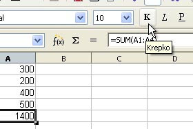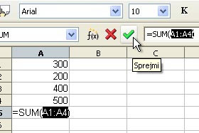 Calc vam je avtomatsko izbral vse zgornje celice za računanje vsote.