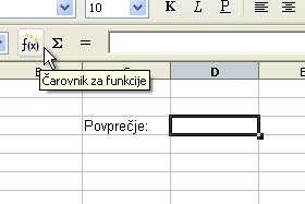 Označite celico desno od teksta in kliknite na ikono Čarovnik za funkcije.