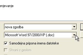 Spodaj v polju vrste datoteke izberite Microsoft Word 97/2000/XP in potrdite na gumb Shrani. Če vas mogoče program vpraša glede kompatibilnosti, potrdite na gumb Da oziroma sledite navodilom. |