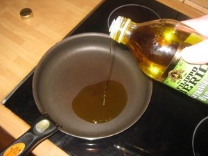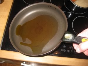 Olje sedaj prelijte po celi ponvi in počakajte, da se malo segreje.